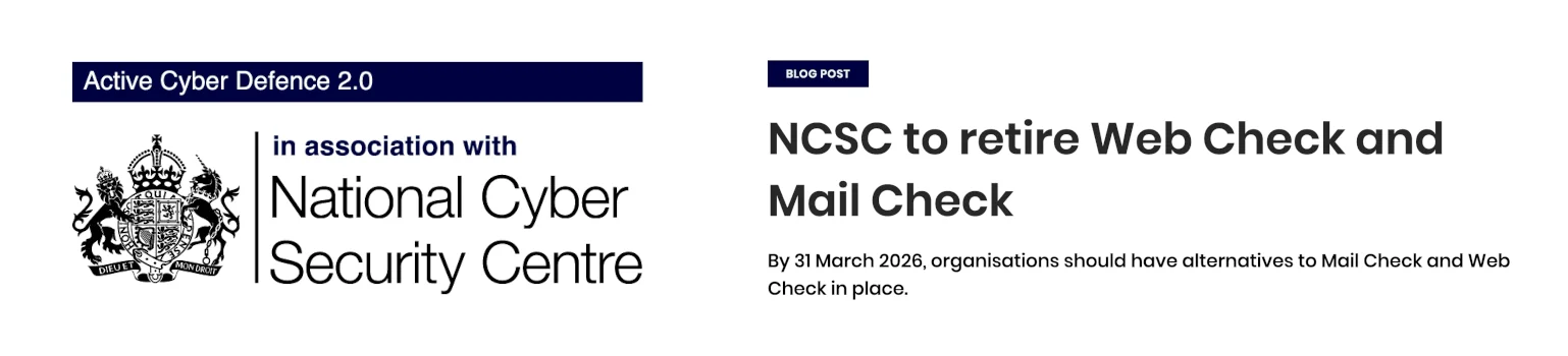 At the beginning of November the National Cyber Security Centre (NCSC) announced that Web Check and Mail Check – two components of the UK government’s Active Cyber Defence programme – will be decommissioned on 31 March 2026.